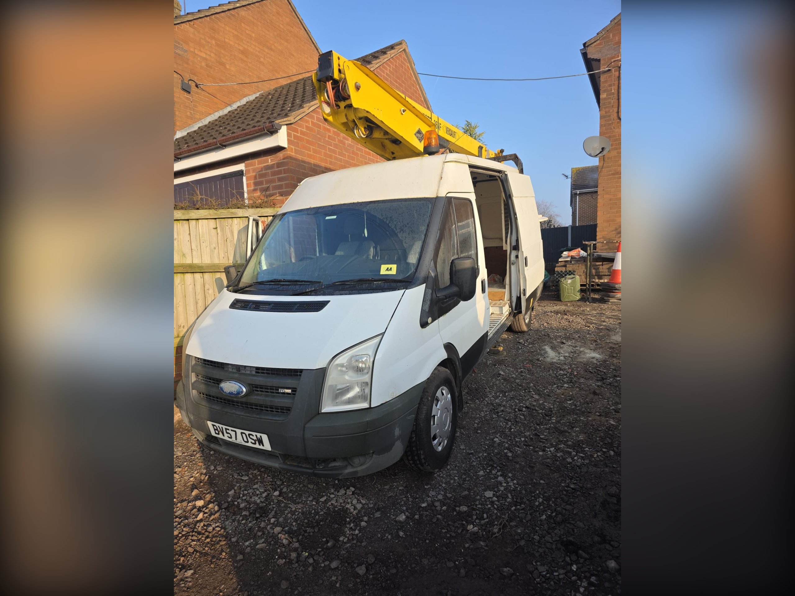 2007 Ford Transit 2.4 TDCi 350 Cherry Picker, reliable panel van, cherry picker ready to tackle any jobs. 156100 miles on the clock and MOT valid until 15/09/2026. Equipped with features such as air bag driver, anti-lock brakes, central door locking, head restraints, and immobiliser. The cherry picker is in perfect working order and comes with self levelling jacks, the van drives good. I used it privately so I have not had lola certificate on it.